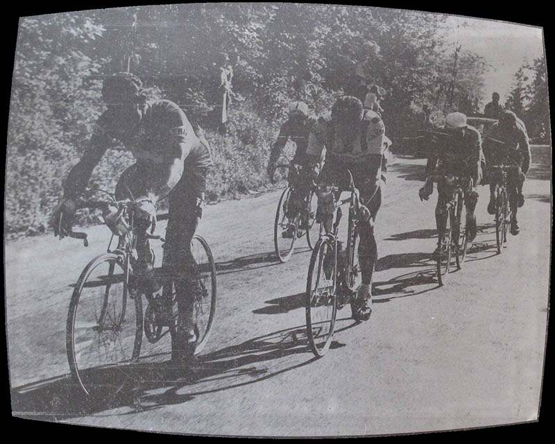 Of course, identifying the riders depicted on the box covers could help to date the game. At least it would provide a terminus post quem (a date before which the game cannot have been made). However, this black and white picture will hardly help to date the game, since it looks like it was taken well before 1966.