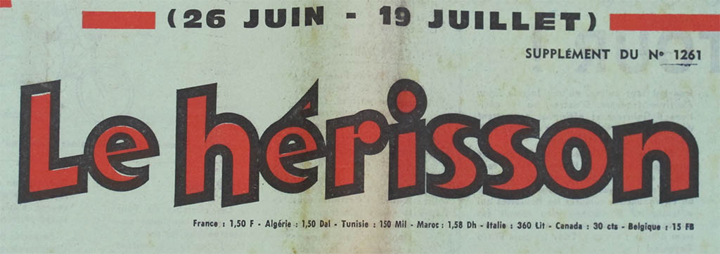 The list of illustrators who collaborated with Le Hérisson over the years is quite impressive, including well-known names such as Pellos, Sempé, or Cabú. However, it is not the case with the illustrator/creator of this game. I have not been able to identify him. Nobody with a similar name appears on Jean-Michel Linfort's "Grand livre des illustrateurs, des dessinateurs et des caricaturistes du Tour de France". What is worse, I am not even sure I have read the signature correctly. If you are able to help, please contact me.