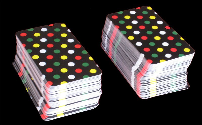 Furthermore, both decks have the same backs ("1984" edition on the left, in case you wonder). They can probably be mixed for longer races, with more players, and possibly more strategy. However, I have not tried to mix them yet, nor has the game designer, as far as I know. I may do it soon, but I have to find the players. If you try first, please let me (us) know how it went.