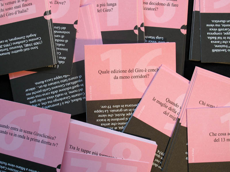 Small question and answer game about the Giro d'Italia. The game is produced by a self-defines "social cooperative in favour of the integration of people with difficulties" (www.futuracoopsociale.it/)