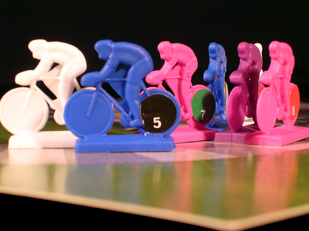 When I first reviewed the game, I wrote: "The rules of the game are quite simple but potentially interesting. It is just a dice game, but it could have been the definitive cycling dice game. Unfortunately, it doesn't really work. The riders are too big for the board, or maybe there are too many riders, since the board is quite big. What's worse, the riders tend to fall. The game, unfortunately, turns out to be quite unplayable."
