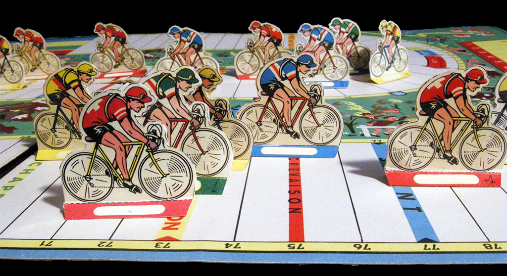 Regarding the game, she told me that Mère Picon (who were quite involved in advertising goodies as card games or blotters) asked Jacquet to make a game inspired by the Criterium du Dauphiné, since the race (created in 1947 created by the newspaper Le Dauphiné Libéré) passed not far from the headquarters of La Mère Picon in Saint Félix (and arrived in Grenoble).