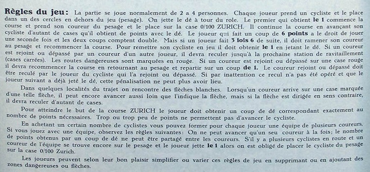 The rest of the rules are basically the same in the two games. With one rider per team it is a simple roll-and-move game. With larger teams at least you have the choice of which rider you want to move, which gives the game a (small) tactical edge. Nevertheless I will keep this game in the game-of-goose section of the site.