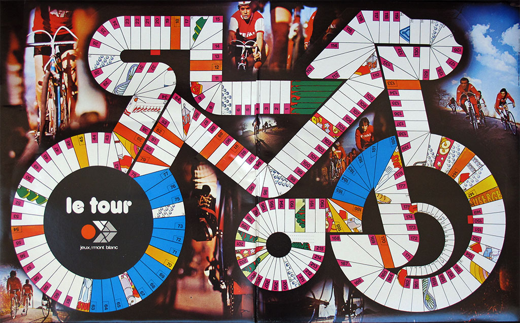These seven riders are the 70's type smaller Cofalu (as opposed to the bigger later ones, found in games like L'Echappée Infernale or Criterium). As many other (mostly French) games, the seventh rider (the one with the yellow jersey) is included to replace the leader. The game is thus for a maximum of six players.